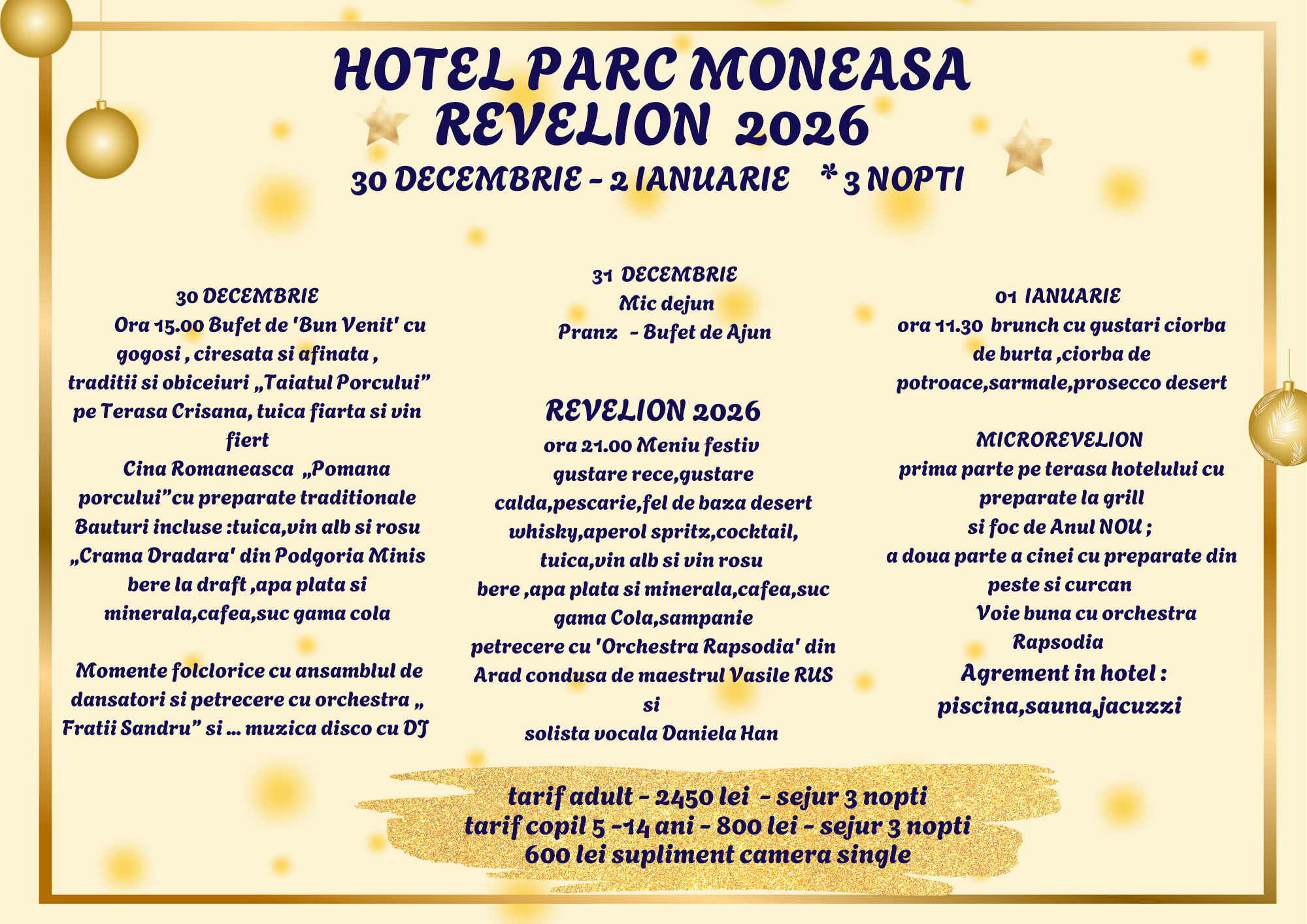 💰 Tarif adult: 2450 lei / persoană (3 nopți)